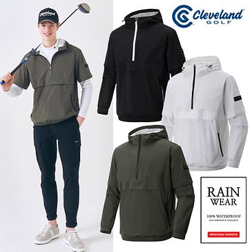 [Cleveland Golf] Men's Golf Raincoat Top and Bottom Set/Golf Pants/Golf Jacket/Golf Wear_CGKMRS1008 with Stretch Waterproof Sleeve Hood